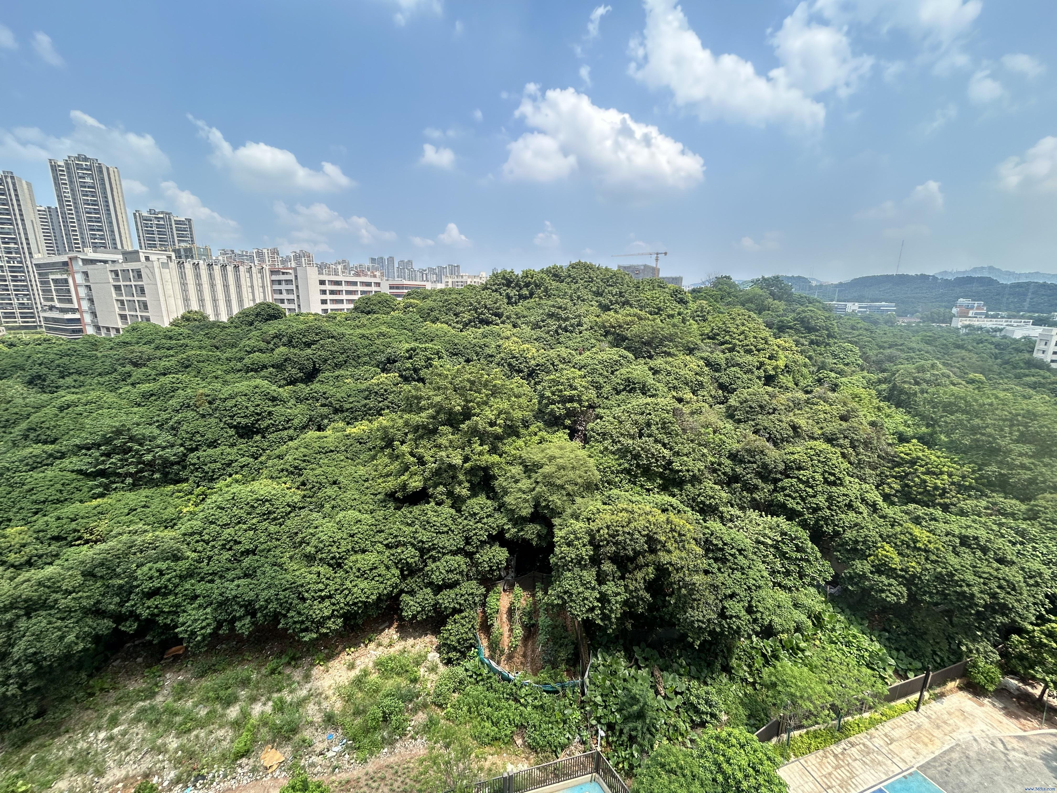 图片左侧为荔枝山,右侧为纳金科技产业园,正前线为合生中央城。