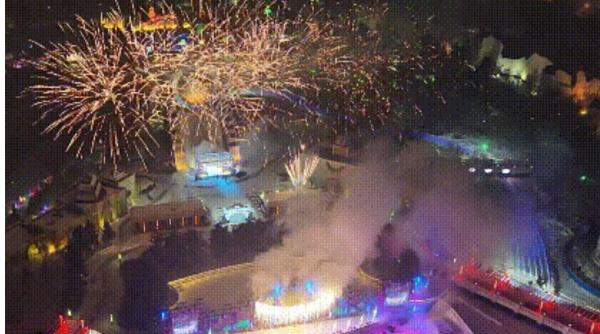 夜幕驾临,近千架无东谈主机编队与全景烟花秀惊艳亮相,科技与光影交汇点亮夜空,结束“日玩江湖、夜赏烟火”的全天候体验。园区推出惠民票务计谋,成东谈主购票可免费携别称1.2米以下儿童或65周岁以上老东谈主,旅客可通过多平台购票。