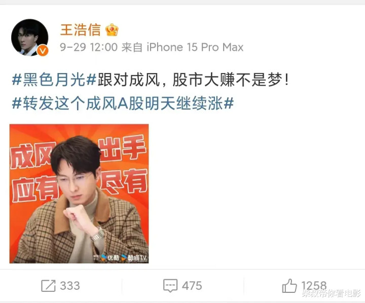 王浩信在《玄色蟾光》演出成风这个变装,近日王浩信更是在酬酢平台发文宣传该剧。