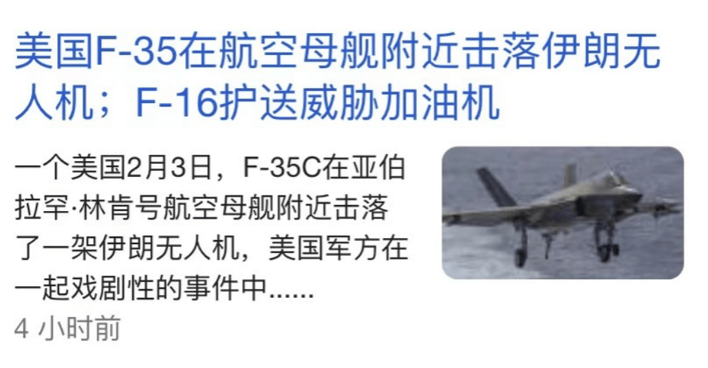 2月3日,好意思军航母林肯号在阿拉伯海上空发现了一架伊朗漏洞型无东谈主机。在好意思方看来,这架无东谈主机正在以一种抑止姿态靠近航母,最终不得不动用F35隐形战机将其击落。关于好意思国来说,这一动弹被视为“刚直驻扎”,这也意味着,在好意思伊之间的紧绷关系中,任何小看成王人可能激发遒劲的反响。