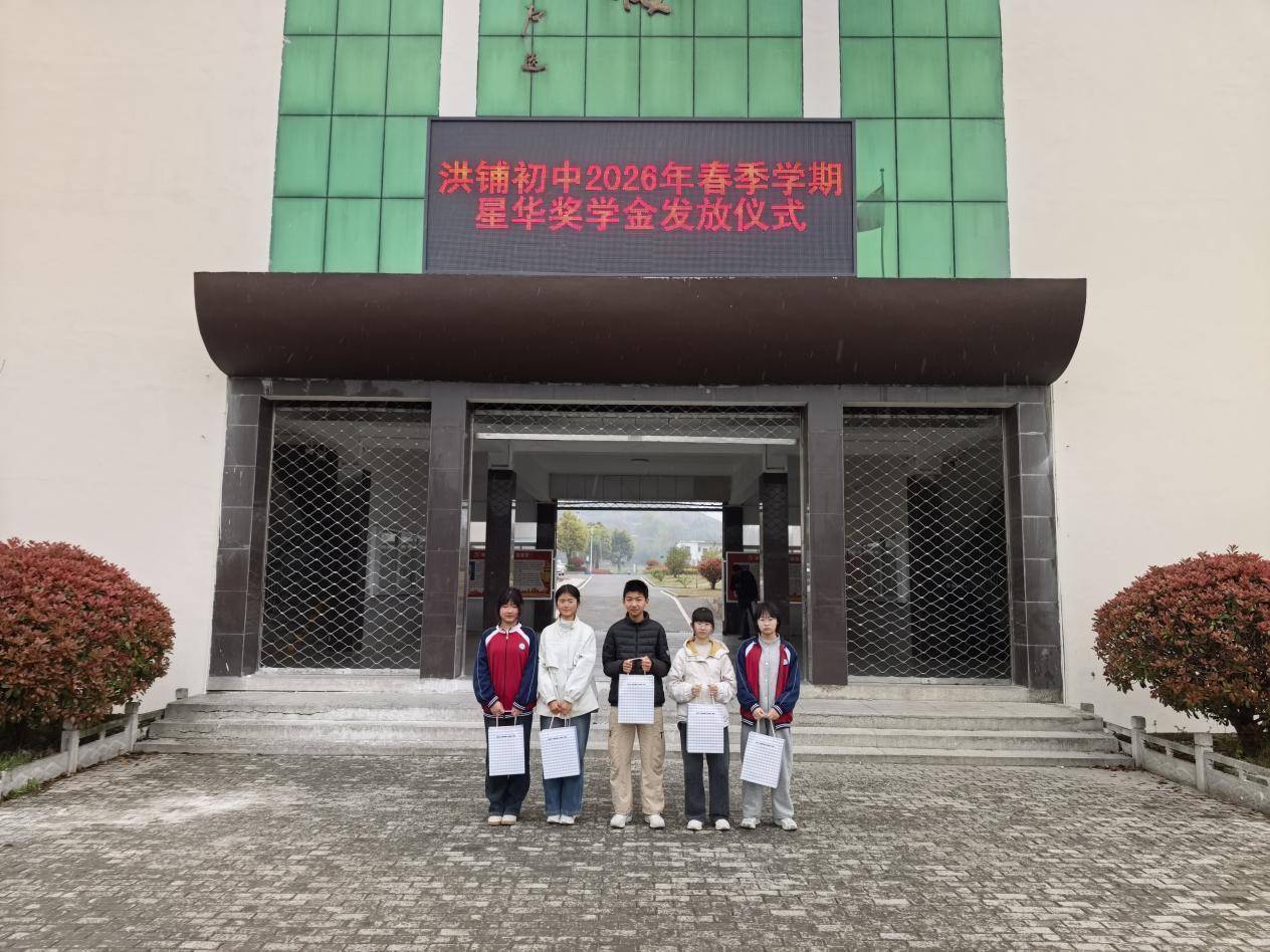 为赏赐先进、开导榜样,3月31日,怀宁县洪铺初中举座师生皆聚在素质楼广场,举行2026年春季学期“星华”奖学金披发庆典。“星华”奖学金由该校94届学友杭州星华测绘有限公司总司理陈星先生提供,旨在对德智体好意思劳全面发展的优秀学生进行奖励。