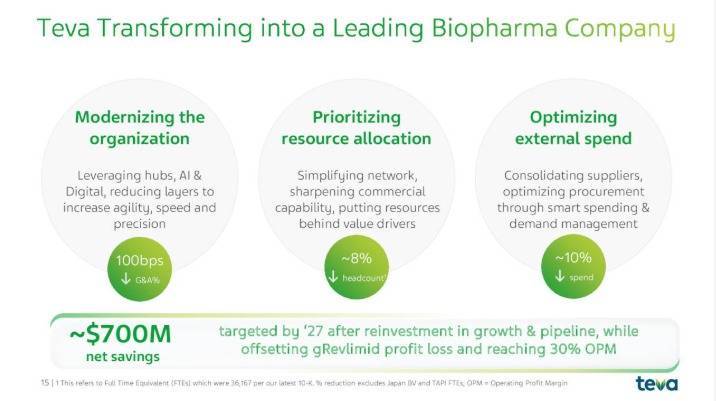 日前,内行仿制药巨头梯瓦(Teva)在2025年第一季度财报电话会议中,泄漏了向跨越生物制药公司转型的筹划,方针是在对业务增长及产物管线再投资后,到2027年终了约7亿好意思元净省俭,同期对消来那度胺(瑞复好意思、Revlimid)仿制药的利润亏本,终了30%营业利润率。