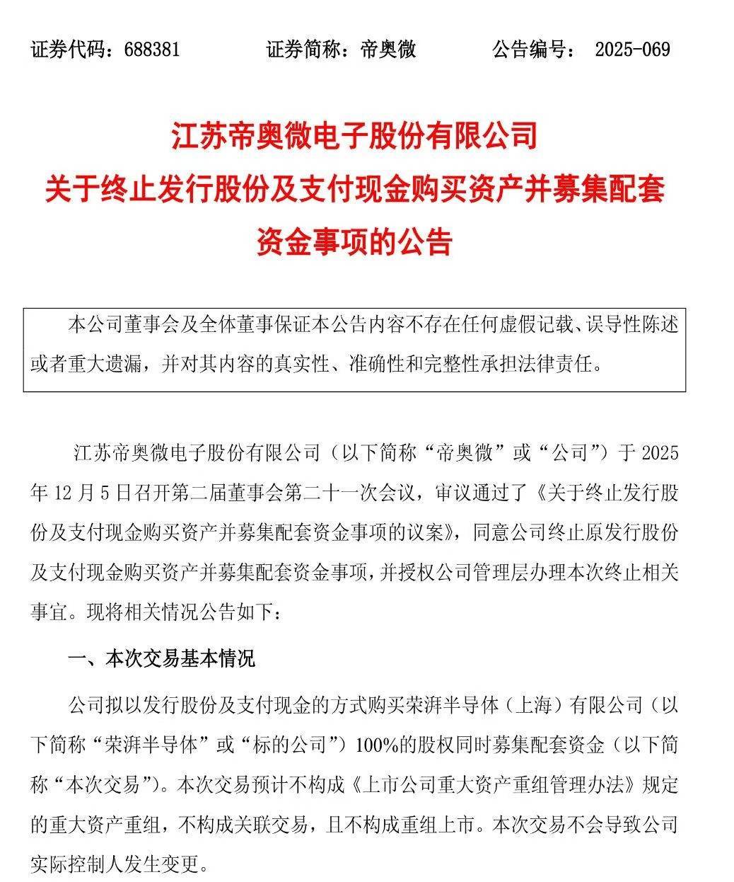 12月5日晚尊龙体育网,帝奥微(688381)发布公告称,公司决定阻隔刊行股份及支付现款购买荣湃半导体(上海)有限公司100%股权并召募配套资金事项。